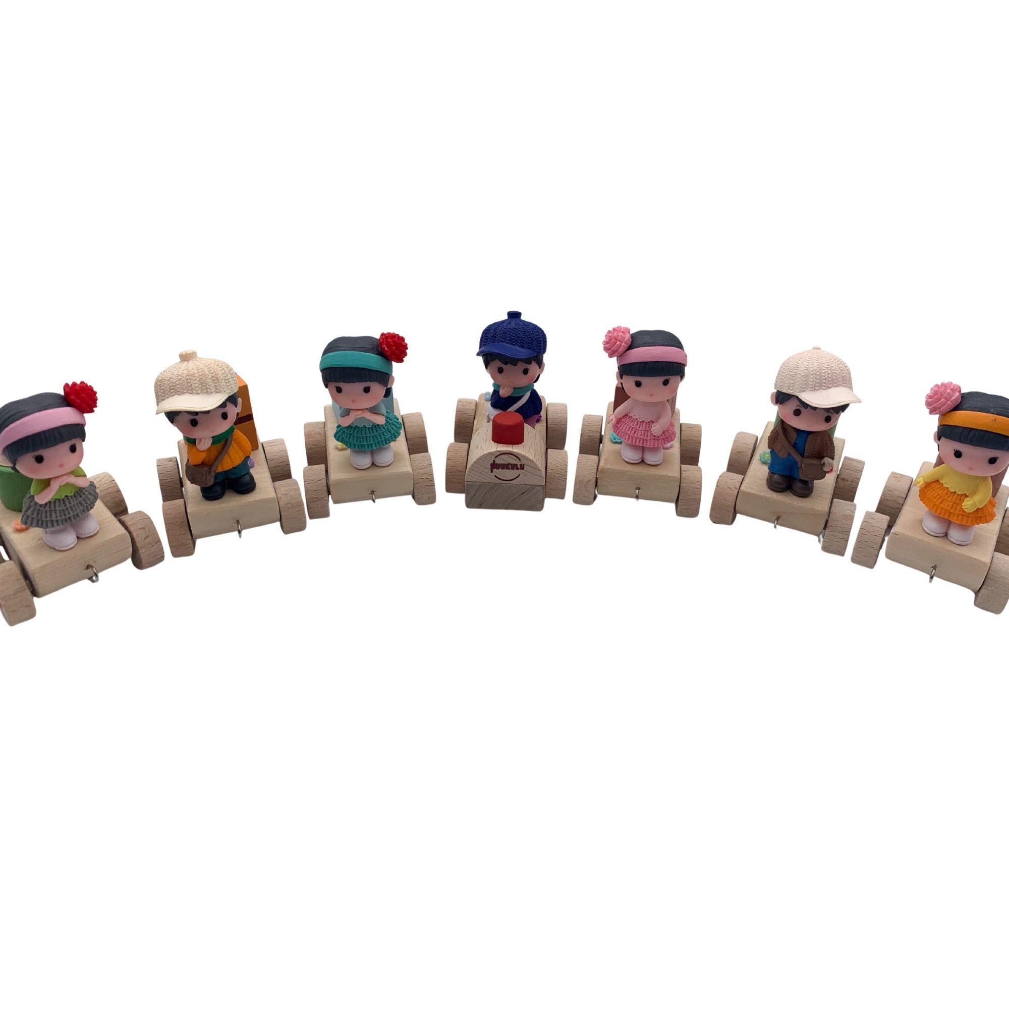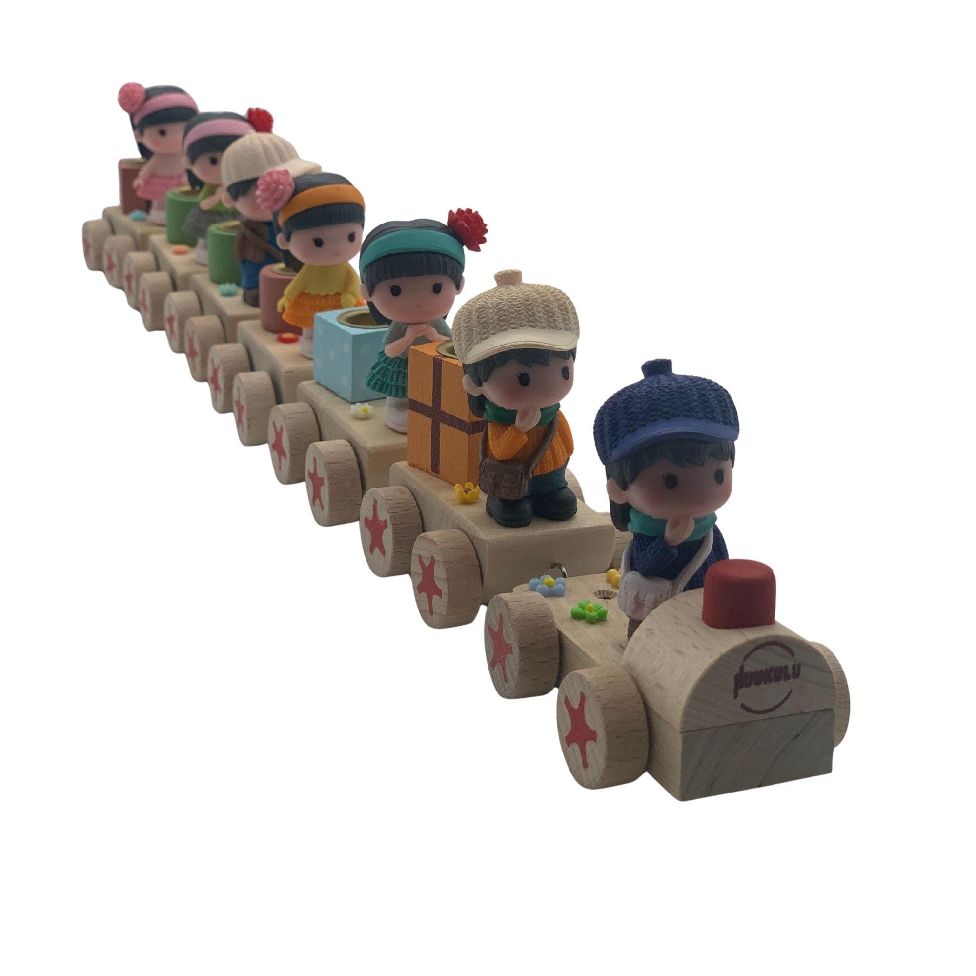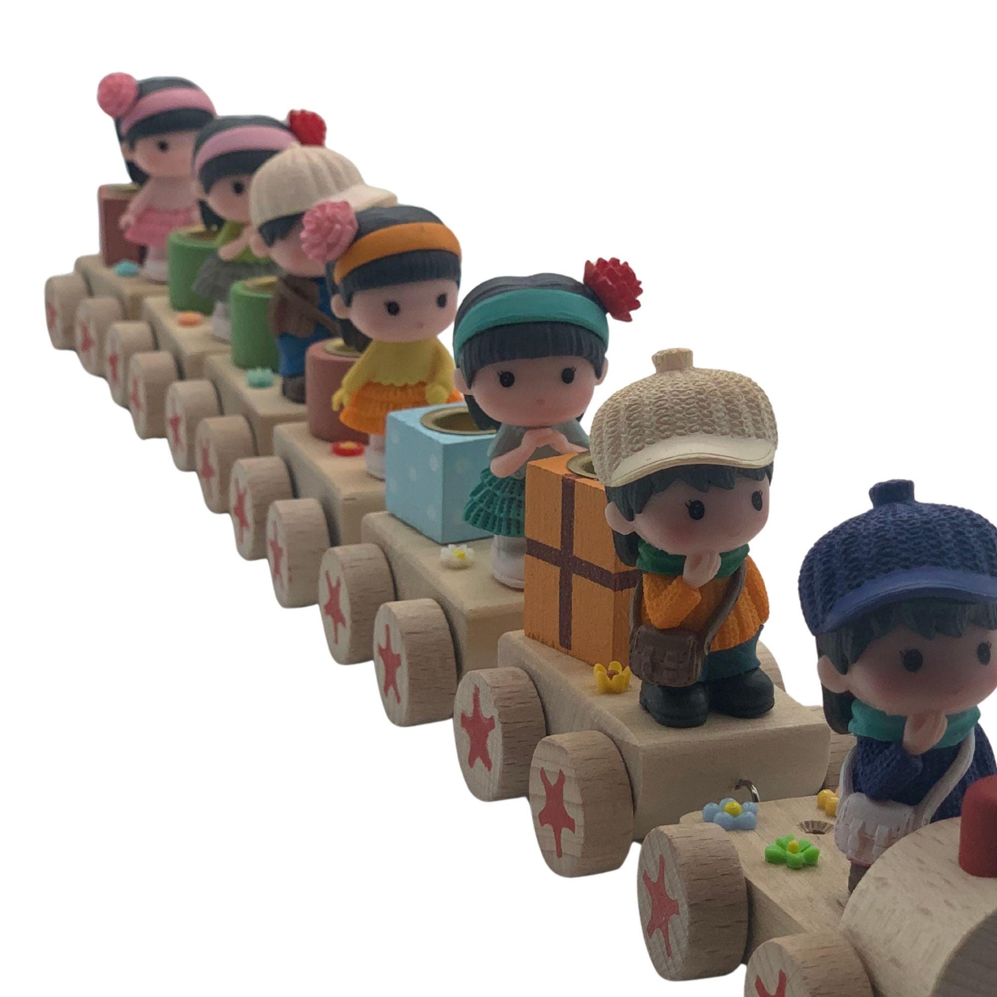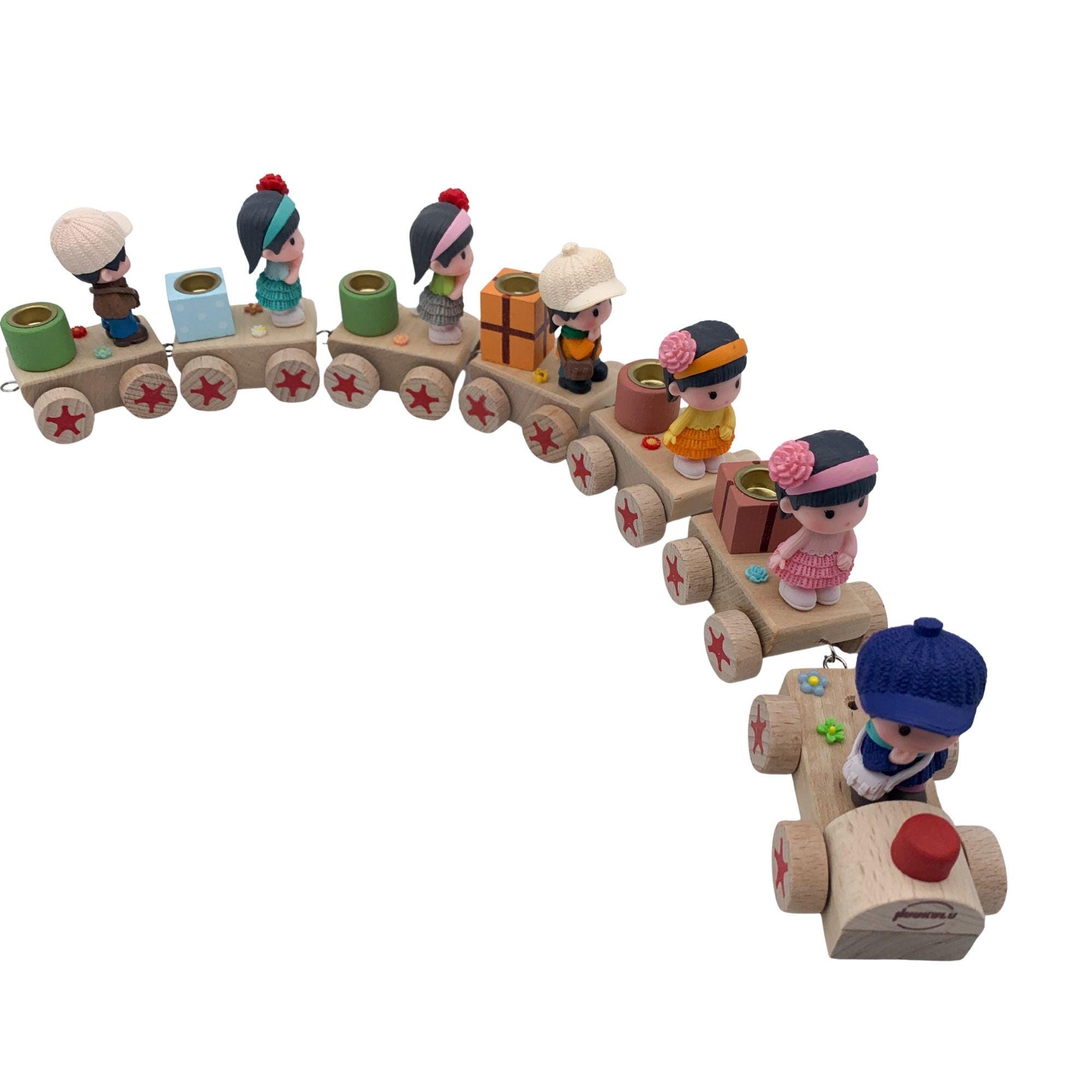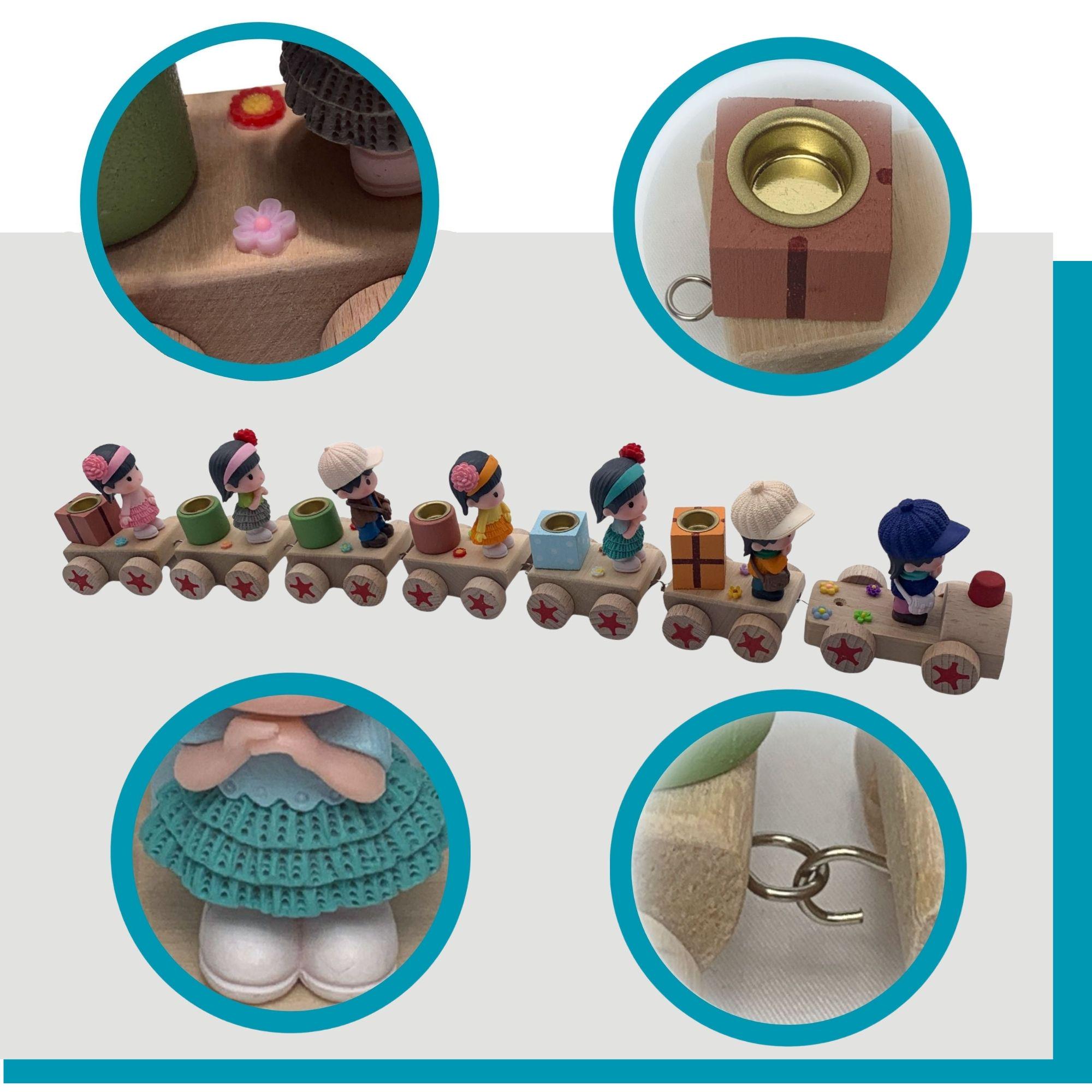 This charming birthday train, available here, consists of a small locomotive and six carriages, all made of sturdy wood. This ensures that this delightful birthday accessory will bring joy for many years to come. Each carriage features a different boy and girl figure, all lovingly and intricately designed. Each figure is individually decorated, giving the train a unique and charming appeal that will bring a sparkle to children's eyes.