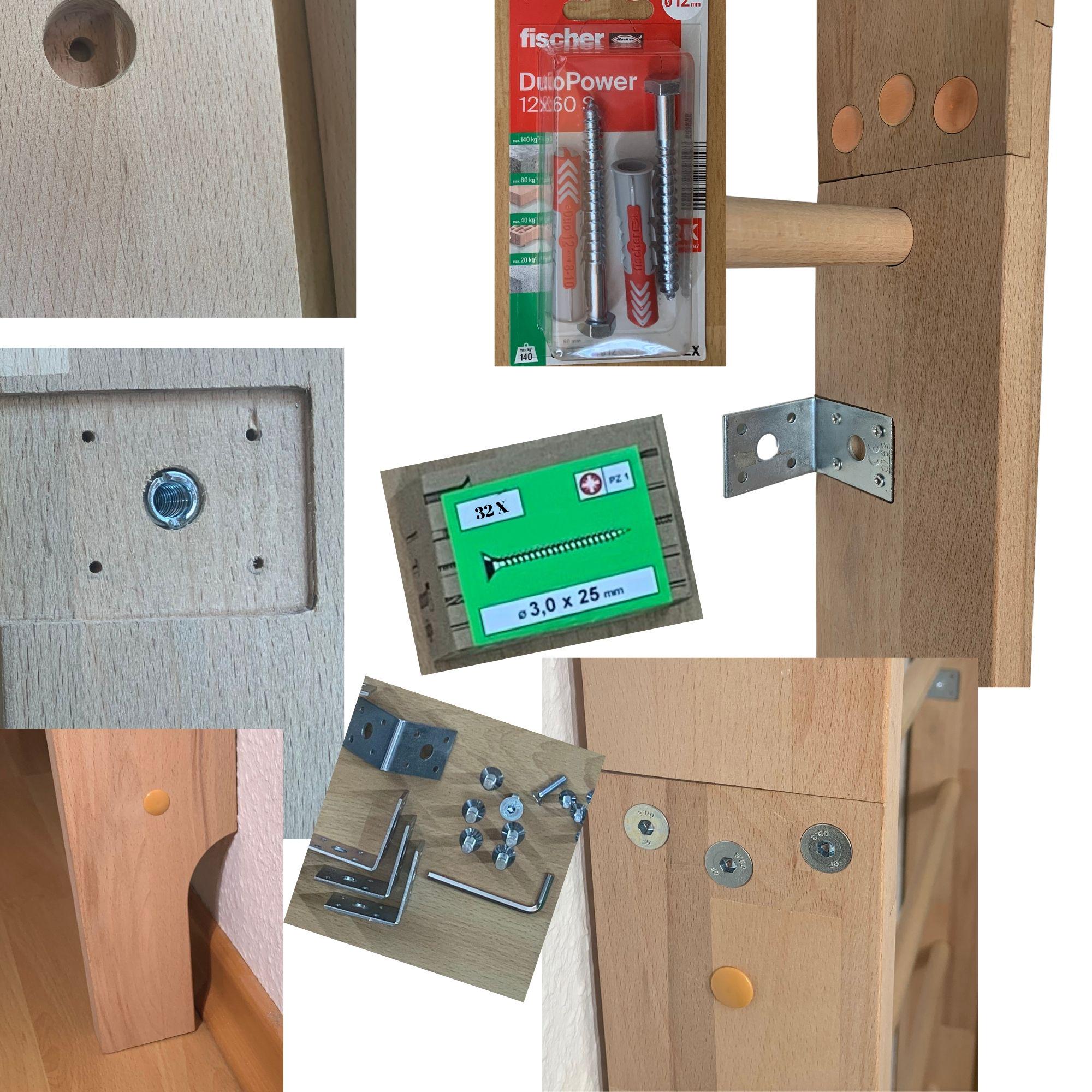 Stable wall mounting: Includes 8 metal brackets and screws from Fischer.