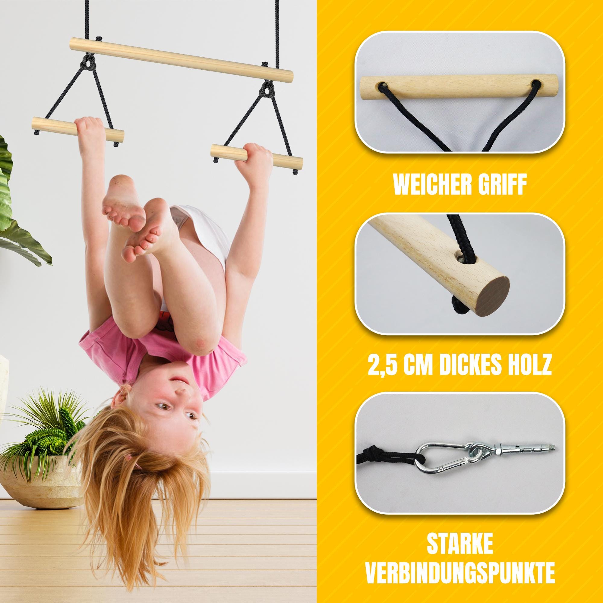Perfect gift for active children: This trapeze swing develops motor skills and body control and is ideal for curious adventurers.