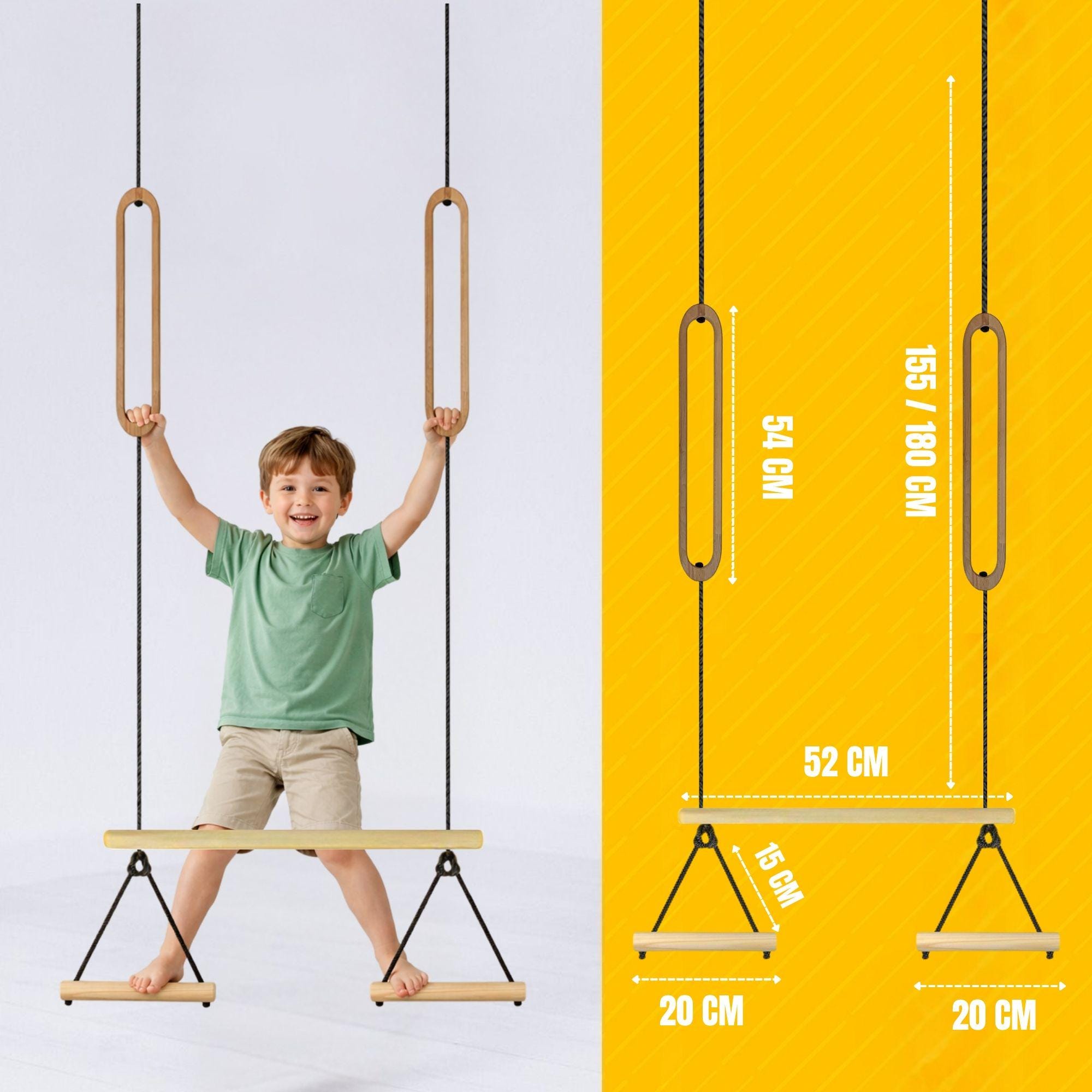High quality & safe play: Our trapezoidal swing set made of sturdy beechwood offers children aged 3 and up safe and carefree playtime fun. The product is suitable for children up to 75 kg.