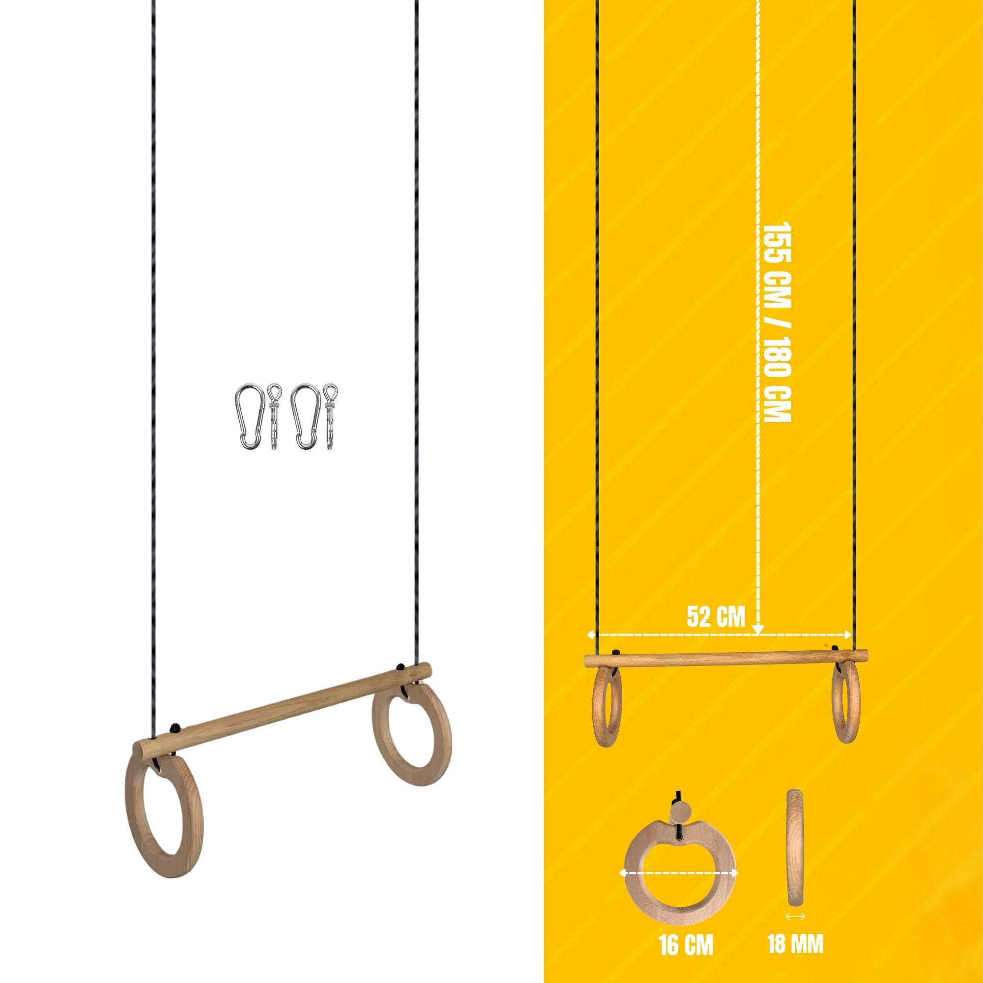 Ring swing, gymnastics with wooden swing, swing seat trapeze with gymnastic rings, trapeze swing, indoor trapeze, children's room/garden trapeze